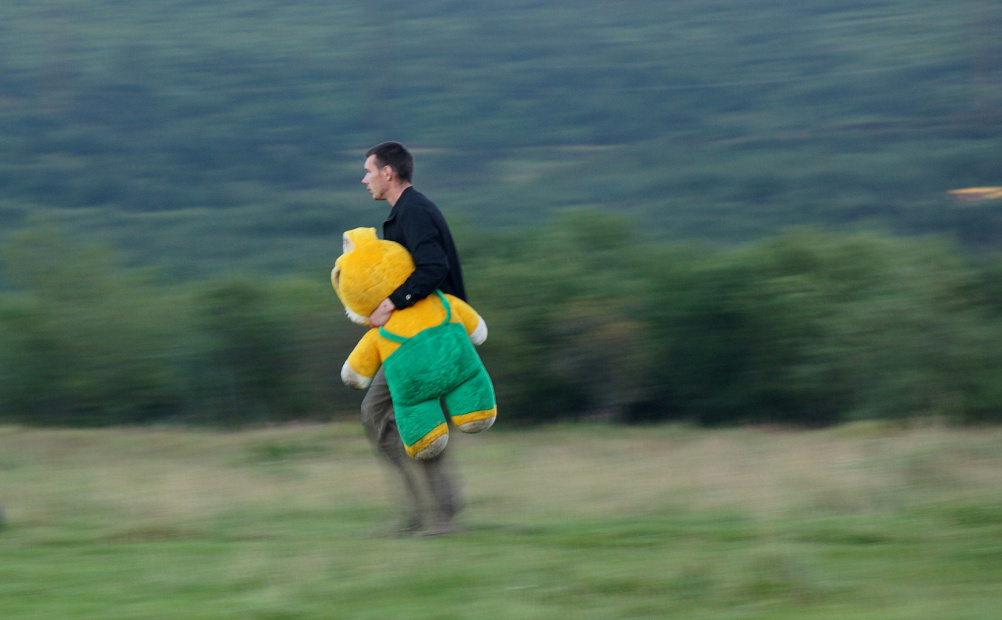 Я вчера вечером собаку выгуливал,смотрю боковым зрением что то жёлто-зелёное большое идёт,смотрю а это парень через поле зайца несёт,в сторону 31-го