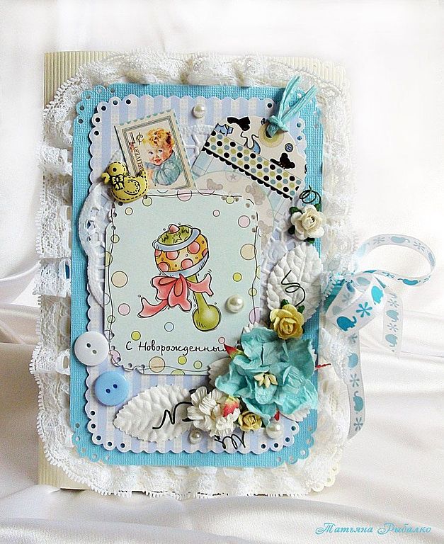 Открытка- поздравление с рождением ребёночка ручной работы.