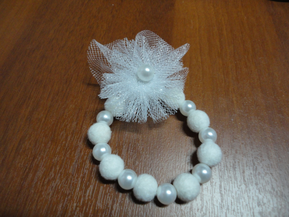 Браслет из шерсти, бусин и фатина