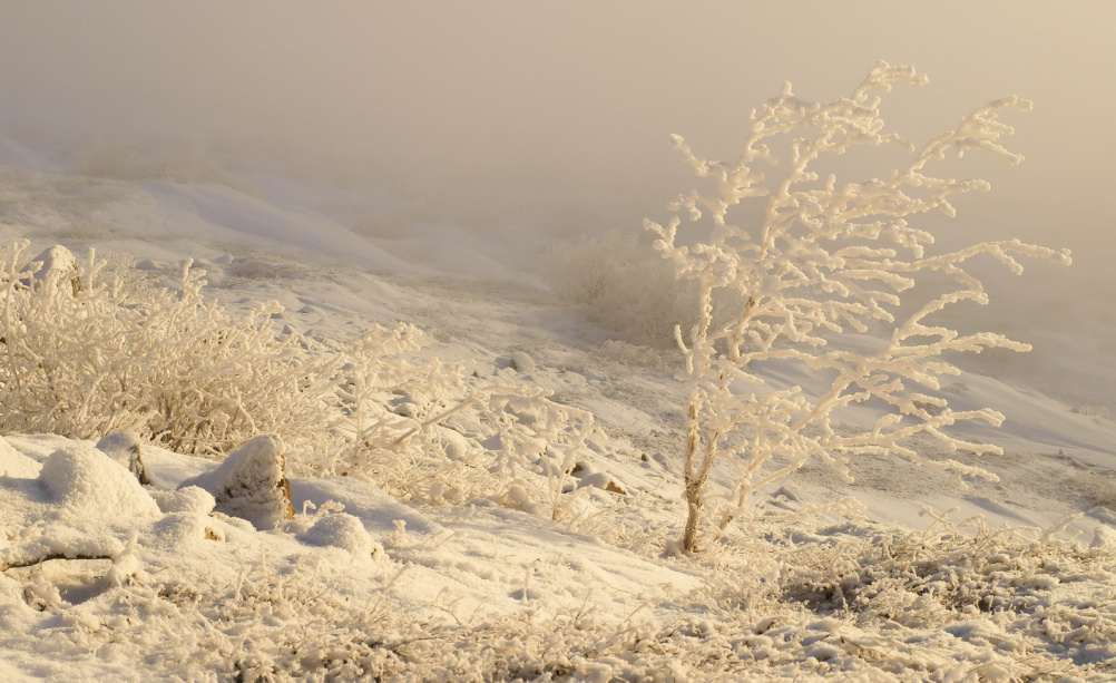 пытался встретить)),вышел рано утром,поднялся на купол,смотрю,а Светлая вся в тумане,но всё равно пошёл,думая,что может туман рассеется,прождал 3 часа над бухтой,верхние точки сопок солнце вовсю освещает,а чуть ниже спускаешься и вот в такой туман попадаешь))
