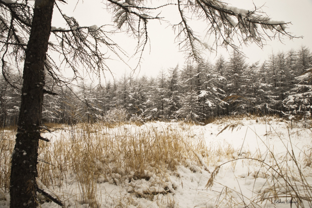 А что у нас тут? Вороны, изредка пробежит медведь, лиственницы, стланик и снег, снег, снег. Преимущественно депрессивные серые краски навивающие уныние и тоску, конечно детям это еще не понятно, им еще не с чем сравнивать.