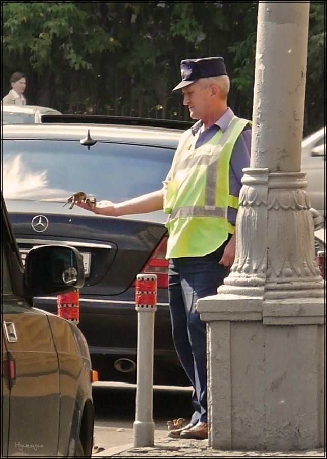 мило улыбаясь подсказал нужную дорогу и продолжил кормить воробьев. :)