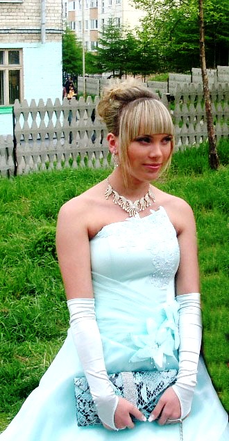 мне кажется к такому платью прическа нужна другая немного,по крайней мере без челки,смотрелось бы романтично и женственно,сама девушка привлекательная