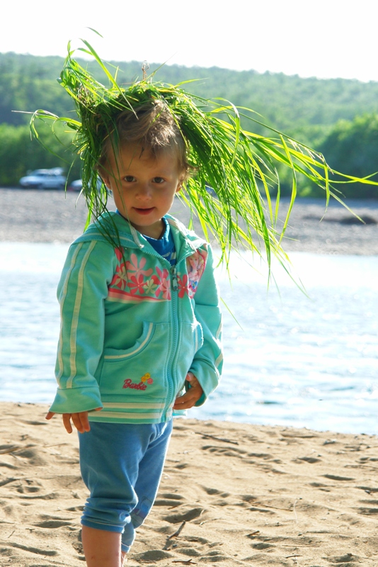 Цветов ещё особенно не было но веночек нужен был срочно...связывали головной убор шнурками...но рёбенку понравился и это главное...