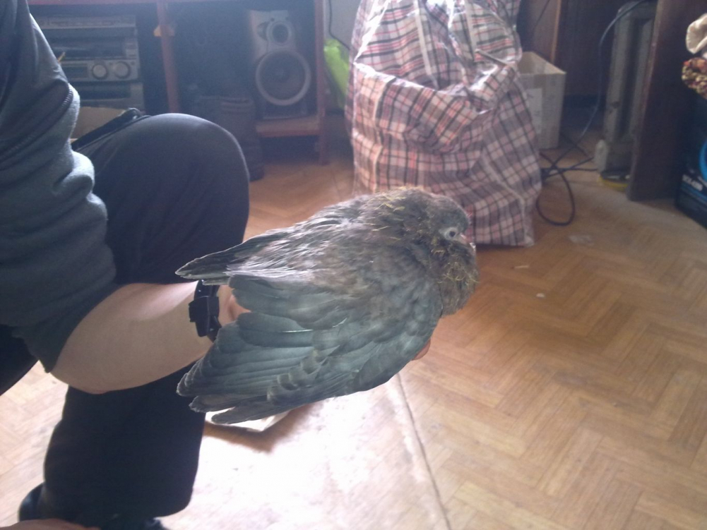 забыл в описание написать: сейчас определили в квартиру, корм вода , всё есть, просто он не летает.