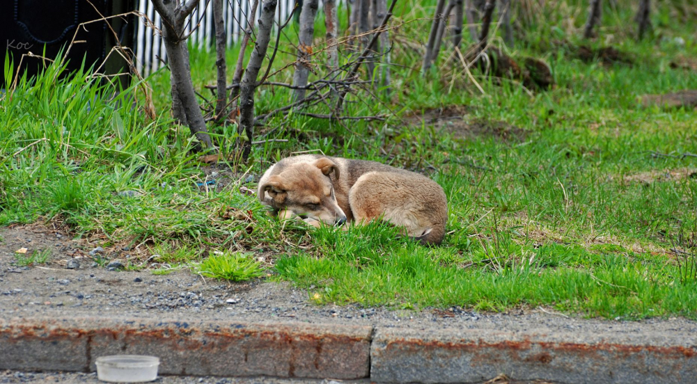 Проезжал и увидел, как напротив главпочтампа, спит барбос под дождиком