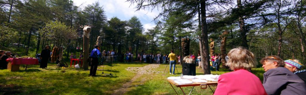 Празднование дня Города. Открытие новых деревянных фигур в парке.