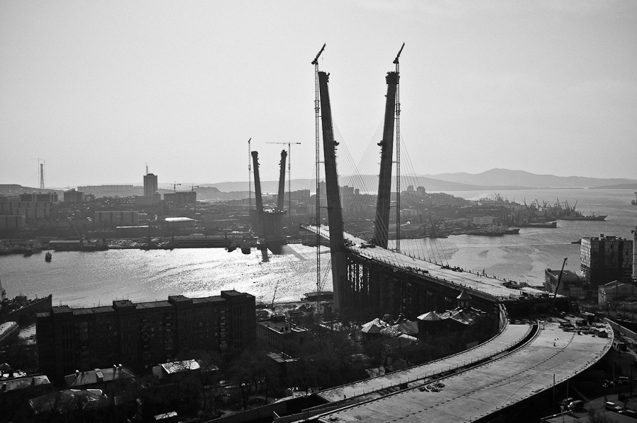 Строительство моста через Золотой Рог, вдали видны пилоны моста на Русский. Зрелище - офигенное!